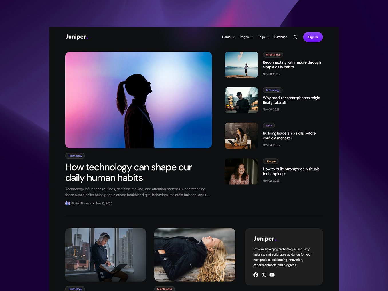 A modern Ghost theme with a fully dark aesthetic and a collection of powerful features designed for writers, creators, and publishers.