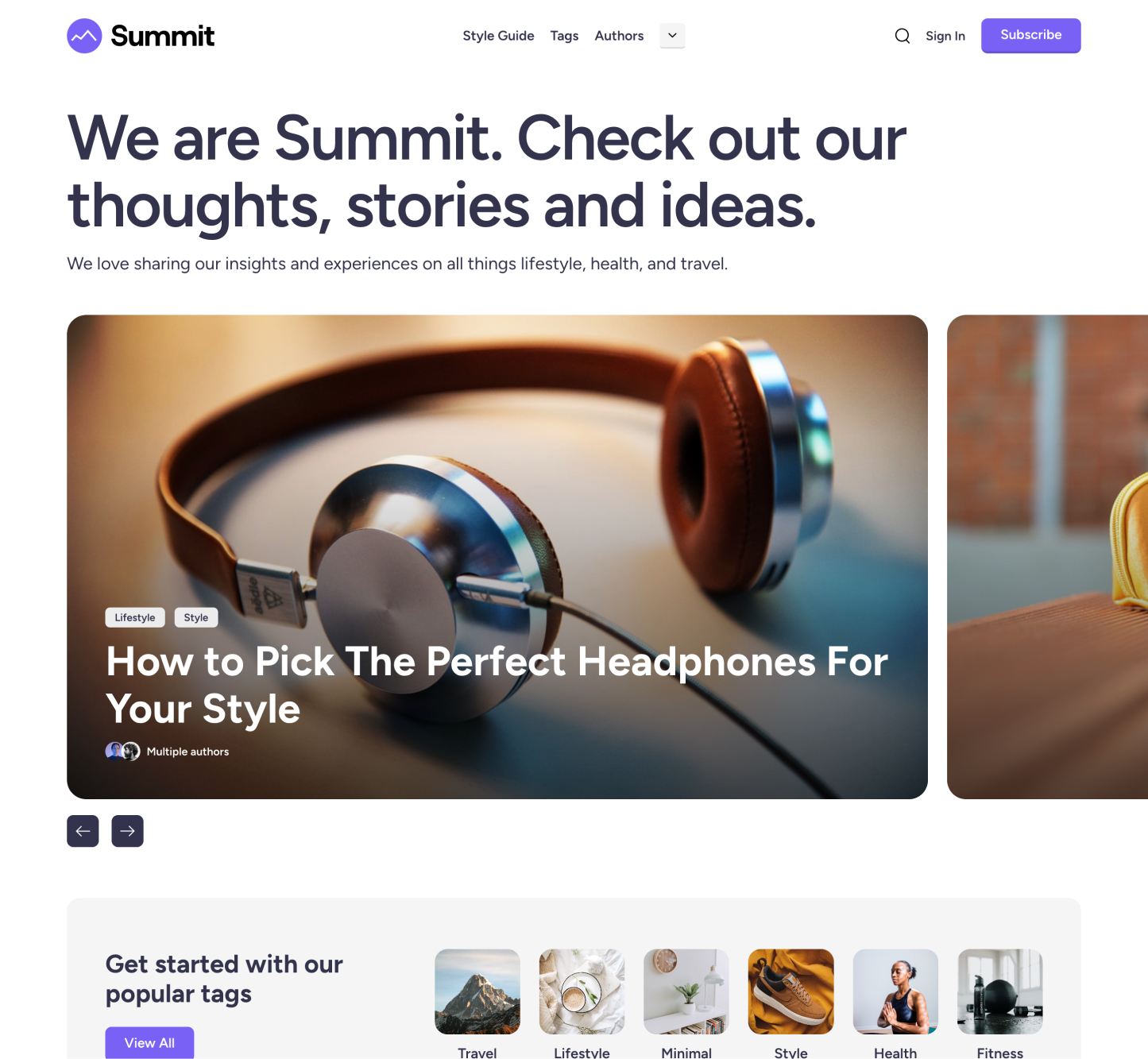 Summit is a clean and stylish Ghost theme with tons of options making it suitable for any type of content!